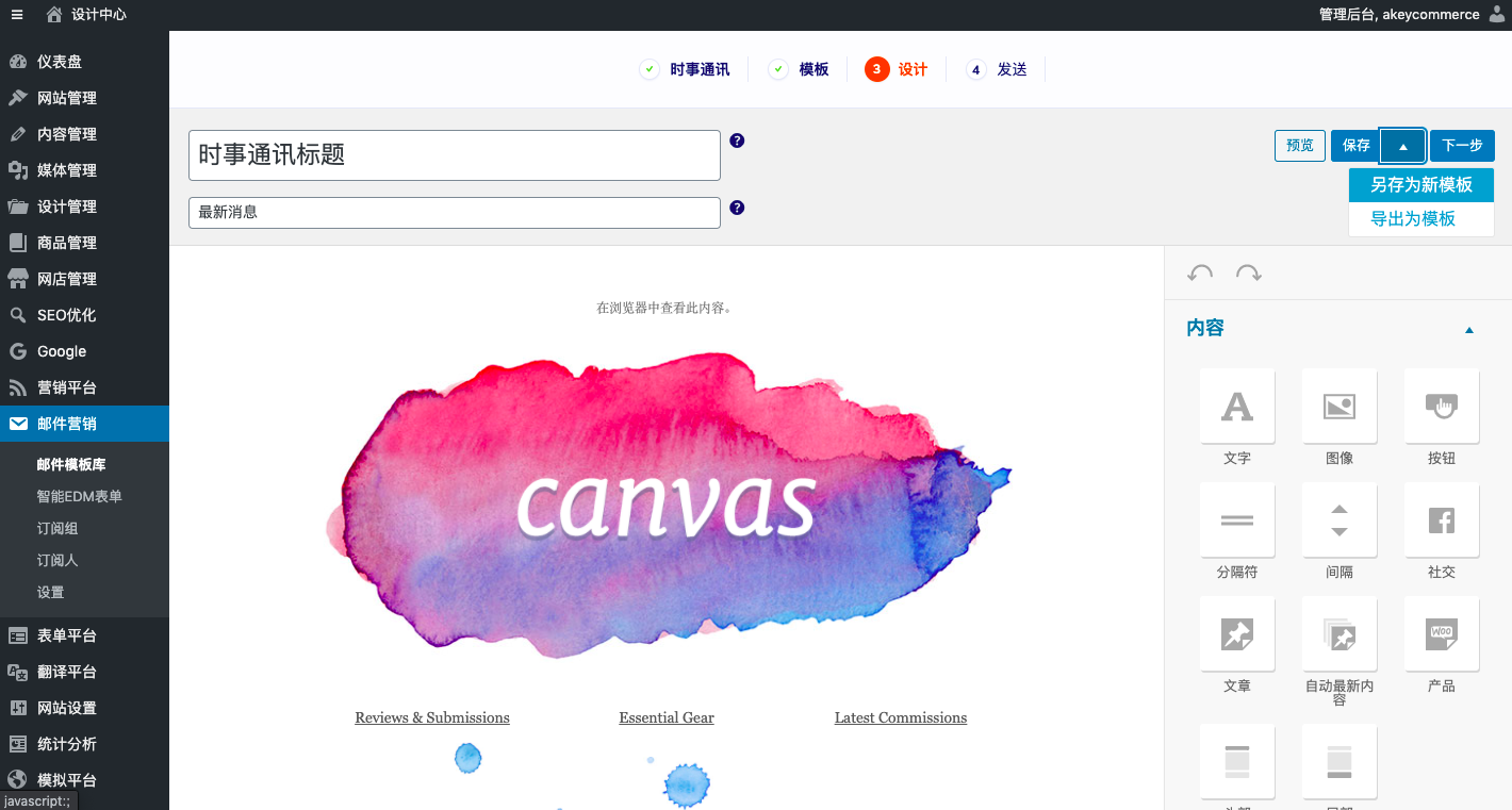 注意:设计邮件模板后,需进入此页面保存为草稿/启用,再退出页面,使邮件模板完整保存(未完整保存的邮件模板需删除后重新进行设计)。