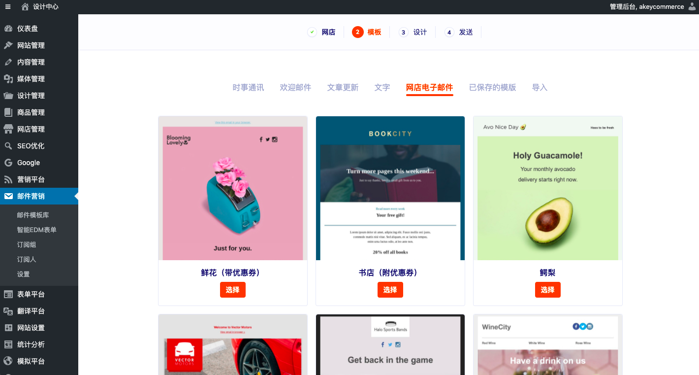 用户可以导航到:管理后台 > 邮件营销 > 邮件模板库,进行邮件模板管理。