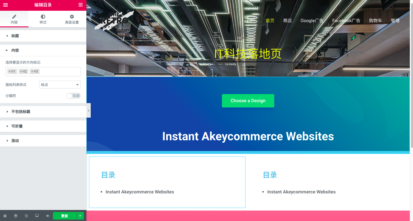 目录提供:标题、内容、CSS标题排除、可折叠、滚动等预制功能和样式效果。