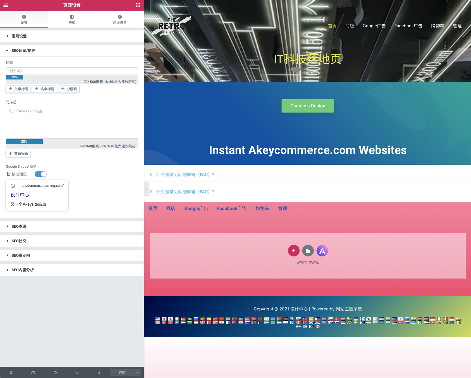主要功能是页面设计器内容的 SEO 社交网络媒体设置,包括: