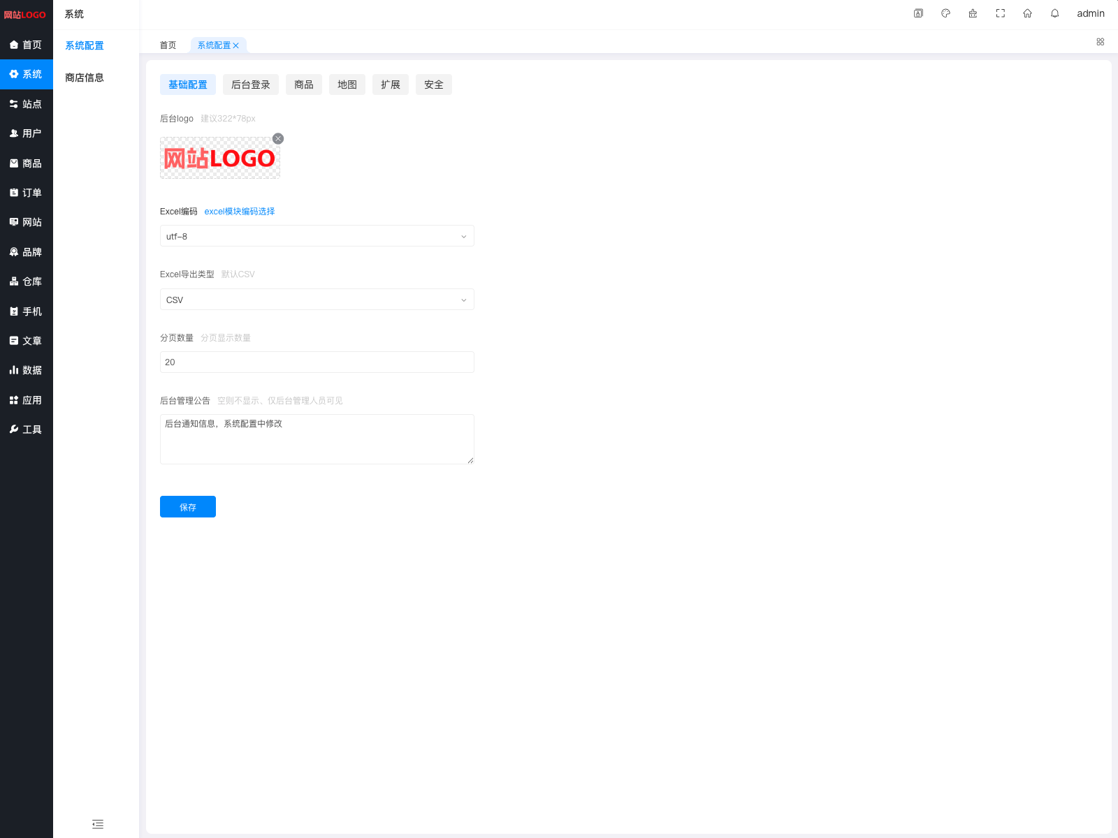 用户打开后台管理菜单,导航至:系统设置 -> 系统配置,可以进行系统配置的管理操作: