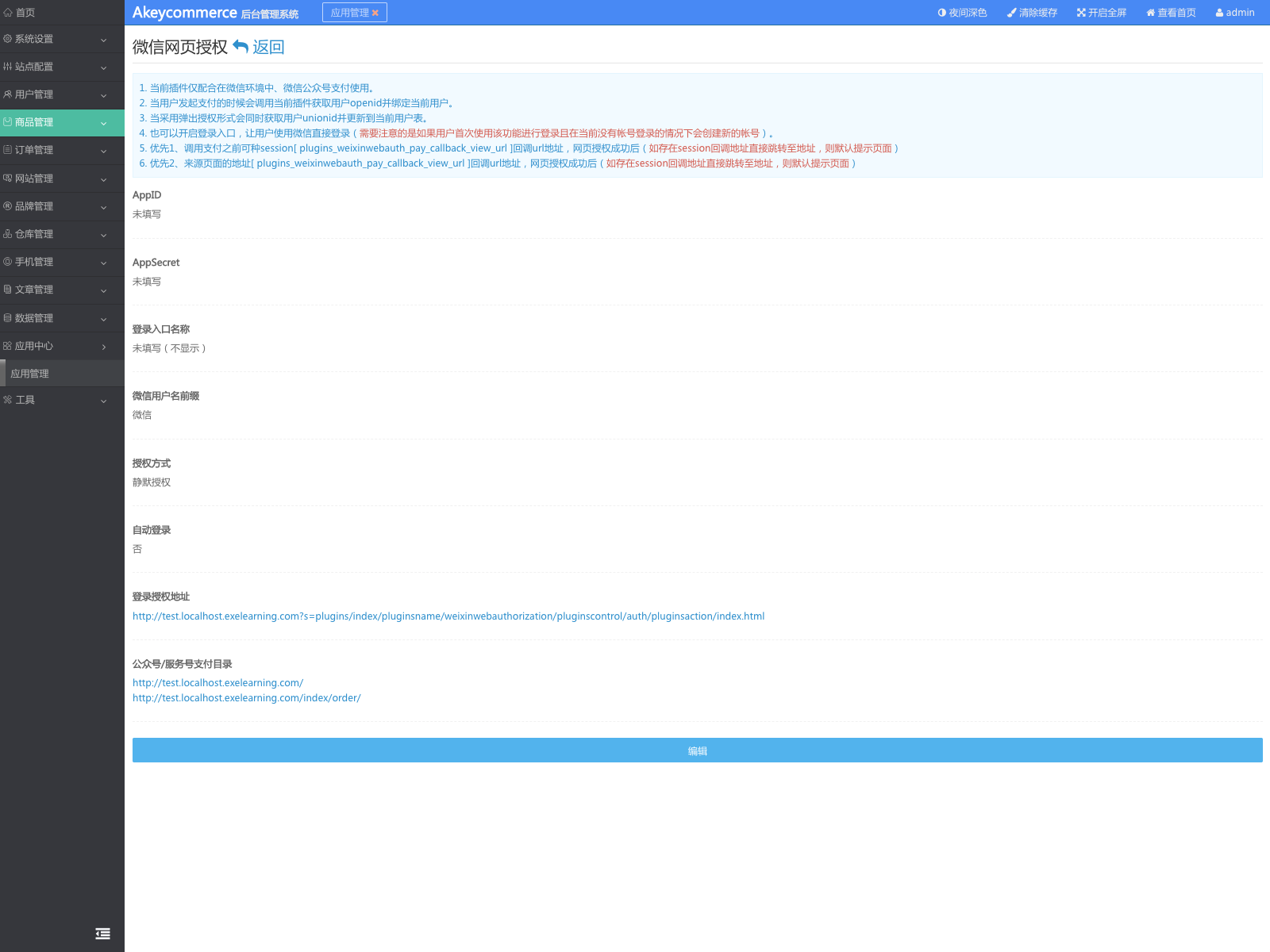 优先2、来源页面的地址[ plugins_weixinwebauth_pay_callback_view_url ]回调url地址,网页授权成功后(如存在session回调地址直接跳转至地址,则默认提示页面)