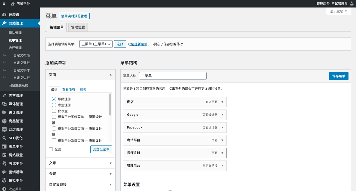 首先,您需要选择菜单,导航到:管理后台 > 网站管理 > 菜单> 选择/创建菜单,然后执行以下操作: